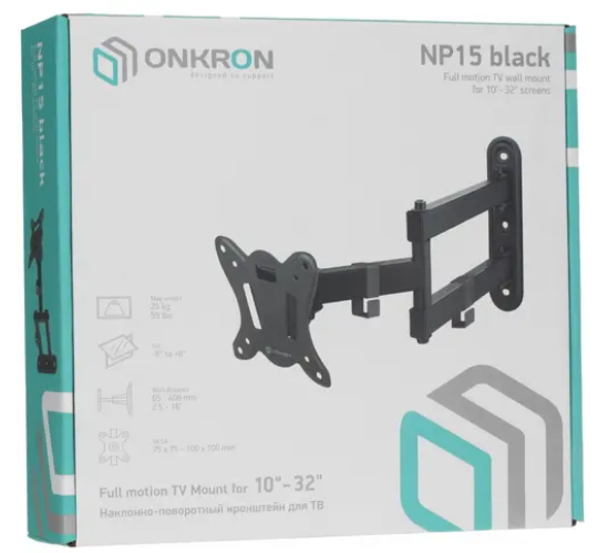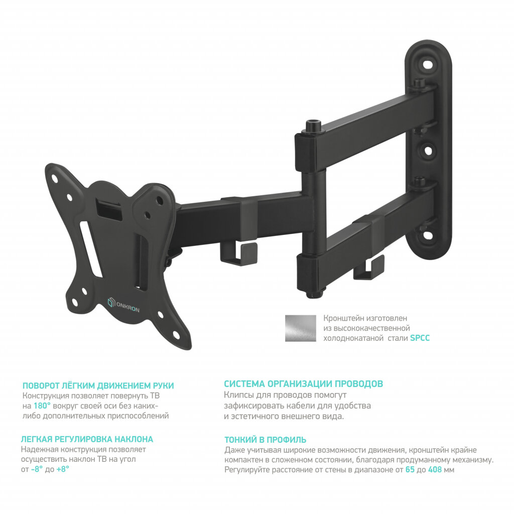 Настенный наклонно-поворотный кронштейн Onkron предназначен для дисплеев с диагональю от 10 до 32 дюймов (25.4 - 81.2 см).