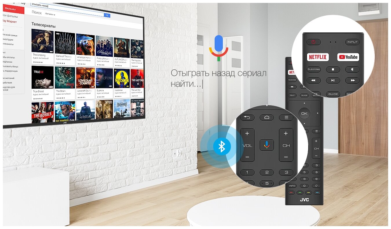 Яркий интерфейс Android TV в стильном корпусе телевизоров JVC
