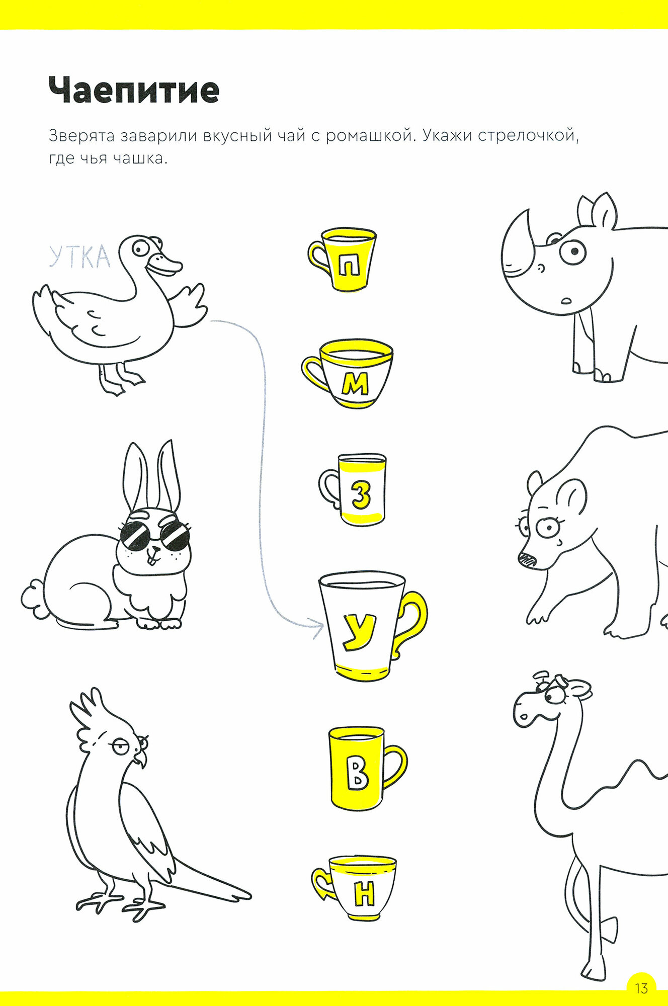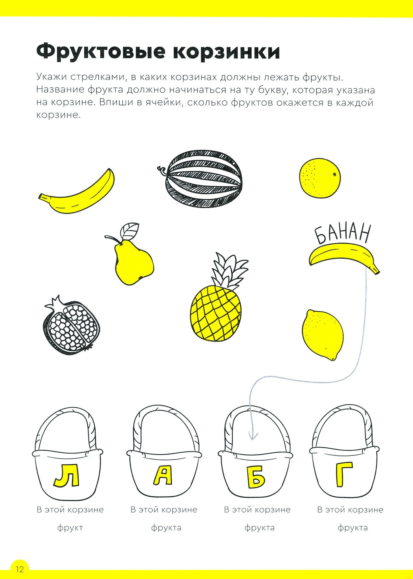 Задания спроектированы так, что ребёнок, решая их поочерёдно, самостоятельно закрепляет знание букв, учится складывать их в слова.