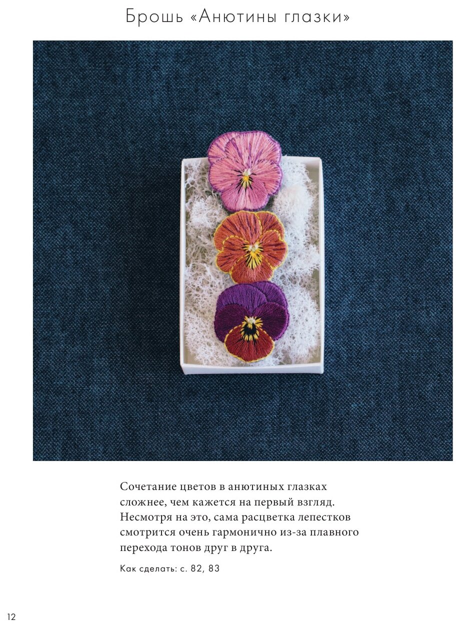 В принципе, дизайны, украшающие обложку книги, дают вполне четкое представление о ее содержании: в основном это - вышитые гладью (причем именно нитками DMC) одиночные цветы и отдельные букетики. Плюс чуть-чуть пэчворка, вышивки лентами и бисером. А вот любители вышивать крестиком могут проходить мимо.