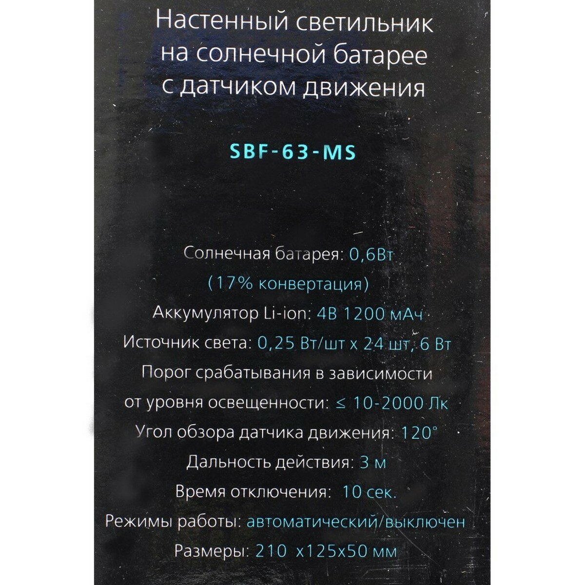 Заряжается от солнечного света и использует накопленную энергию для освещения в темное время суток. Включается на 10 секунд в тёмное время суток по датчику движения. Защищен от неблагоприятных погодных условий, долговечный, энергосберегающий. Опции: Датчик движения, солнечная батарея, аккумулятор. Источник питания: аккумулятор Li-ion 1200 мАч Солнечная батарея: 0,6 Вт 17% конвертация. Порог срабатывания датчика движения:10 Лк. Дальность действия: 3 метра. Угол обзора: 120 градусов. Время отключения: 10 сек. Корпус светильника с 24 лампами выполнен из пластика и нержавеющей стали. Благодаря высокому качеству материалов устройство является прочным и долговечным, а также защищено от воздействия неблагоприятных погодных условий.