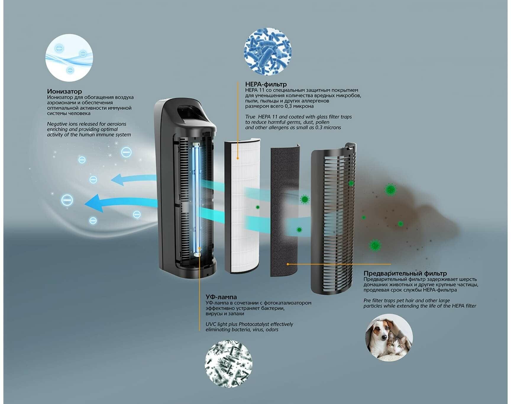 | Фильтры | предварительной очистки, НЕРА-фильтр, фотокаталитический |