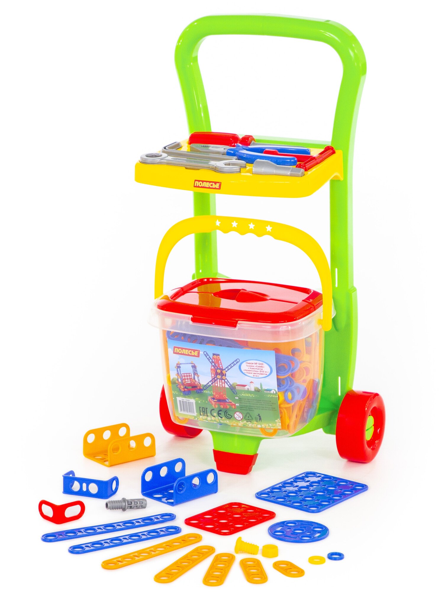 POLESIE Тележка "Caddie" + инструментов (6 элементов) + Конструктор "Изобретатель" (202 элемента) (54401_PLS)