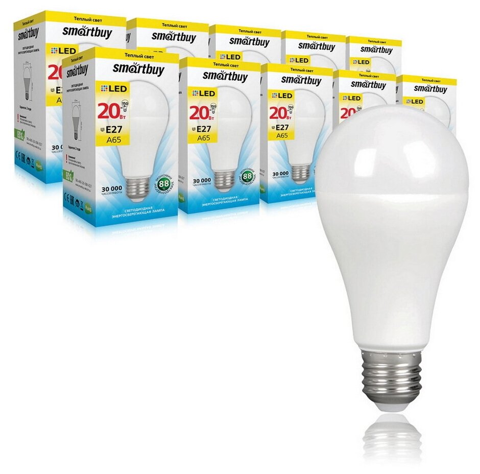 Лампа светодиодная Smartbuy A65-20w/3000/e27