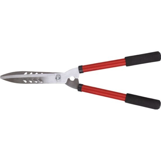 Кусторез Курс предназначен для обрезки кустарников и формирования живых изгородей. Благодаря лезвиям длиной 190 мм, он эффективно справляется с обрезкой как тонких, так и более толстых веток, обеспечивая аккуратный и ровный срезПреимущества Высококачественные лезвия: лезвия изготовлены из инструментальной стали с высокой частотой закалки (52 HRC), что обеспечивает их долговечность и остроту режущей кромки. Это позволяет легко справляться с ветками различной толщины без риска их повреждения Противоскользящие рукоятки: металлические ручки оснащены ПВХ покрытием, которое предотвращает скольжение рук во время работы. Это повышает безопасность и удобство использования инструмента, особенно при длительной работе Оптимальная длина: длина лезвий 190 мм и общая длина ручек 530 мм обеспечивают удобный захват и маневренность, позволяя легко обрабатывать труднодоступные участки кустарников и живых изгородей