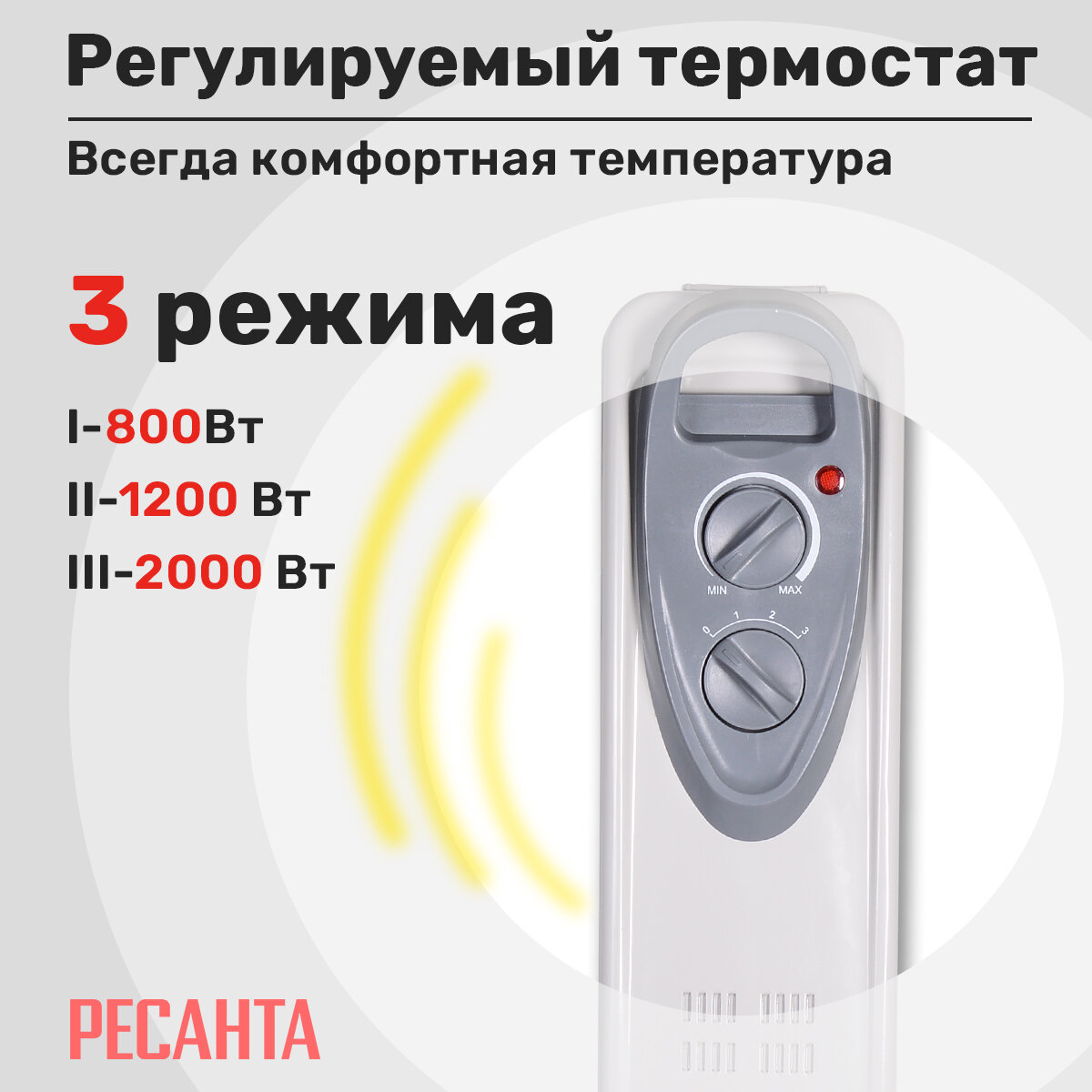 Масляный радиатор от компании Ресанта - это надежное и эффективное средство обогрева помещений. Он оснащен колесом для перемещения, что обеспечивает удобство использования. Модель имеет механический термостат с возможностью регулировки мощности в трех режимах. Благодаря индикации включения, вы всегда будете знать о том, включен ли радиатор. Напольный тип установки позволяет свободно разместить его в любой удобной точке комнаты. Встроенная защита от перегрева гарантирует безопасность при использовании.