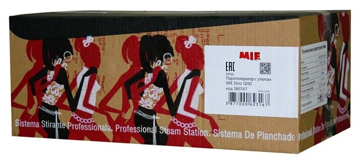 Модель MIE Stiro 1200 представляет собой мощный современный агрегат, который гладит и отпаривает одежду в несколько раз быстрее и эффективнее бытовых утюгов. Характеристики этого устройства позволяют гладить на высоких скоростях и не прилагать при этом особых усилий. Модель MIE Stiro 1200 компактна, имеет мощное давление пара (5 Бар), может работать как в режиме сухой глажки, так и с паром. Мощный парогенератор, профессиональный утюг, регулирование температуры утюга и подачи силы пара – все это MIE Stiro 1200.Утюг модели MIE Stiro 1200 представляет собой профессиональный прибор с высокой мощностью (850W). Его ручка сделана из пробкового дерева, благодаря чему она не выскользнет в процессе глажения. На ручке есть фиксатор постоянной подачи пара, а под ней – регулятор термостата. Подошва прибора сделана из алюминия, поэтому утюг мгновенно нагревается и так же быстро остывает.Парогенератор модели MIE Stiro 1200 выглядит стильно и презентабельно. Он выполнен в черно-серых тонах и имеет обтекаемую форму. Поверхность корпуса парогенератора условно можно разделить на 2 половины. На одной из них есть специальное термостойкое место, куда можно ставить утюг даже с разогретой подошвой. На второй половине парогенератора расположена панель управления.На панели управления есть две контрольные лампочки: зеленая сообщает о готовности пара, а красная – о низком уровне воды в парогенераторе. Между лампочками расположены клавиша включения/выключения утюга и клавиша включения/выключения парогенератора. Объем бойлера парогенератора – 1,2 л. Такого запаса воды хватает на 1,5 часа беспр