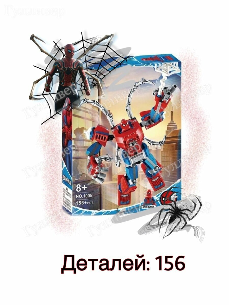 Включает минифигурку Майлза Моралеса и сборный мех, большую паутину, которая умещается в руках и робота, и минифигурку, а также паутину меньшего размера, которая прикрепляется к ногам меха и где-то еще.