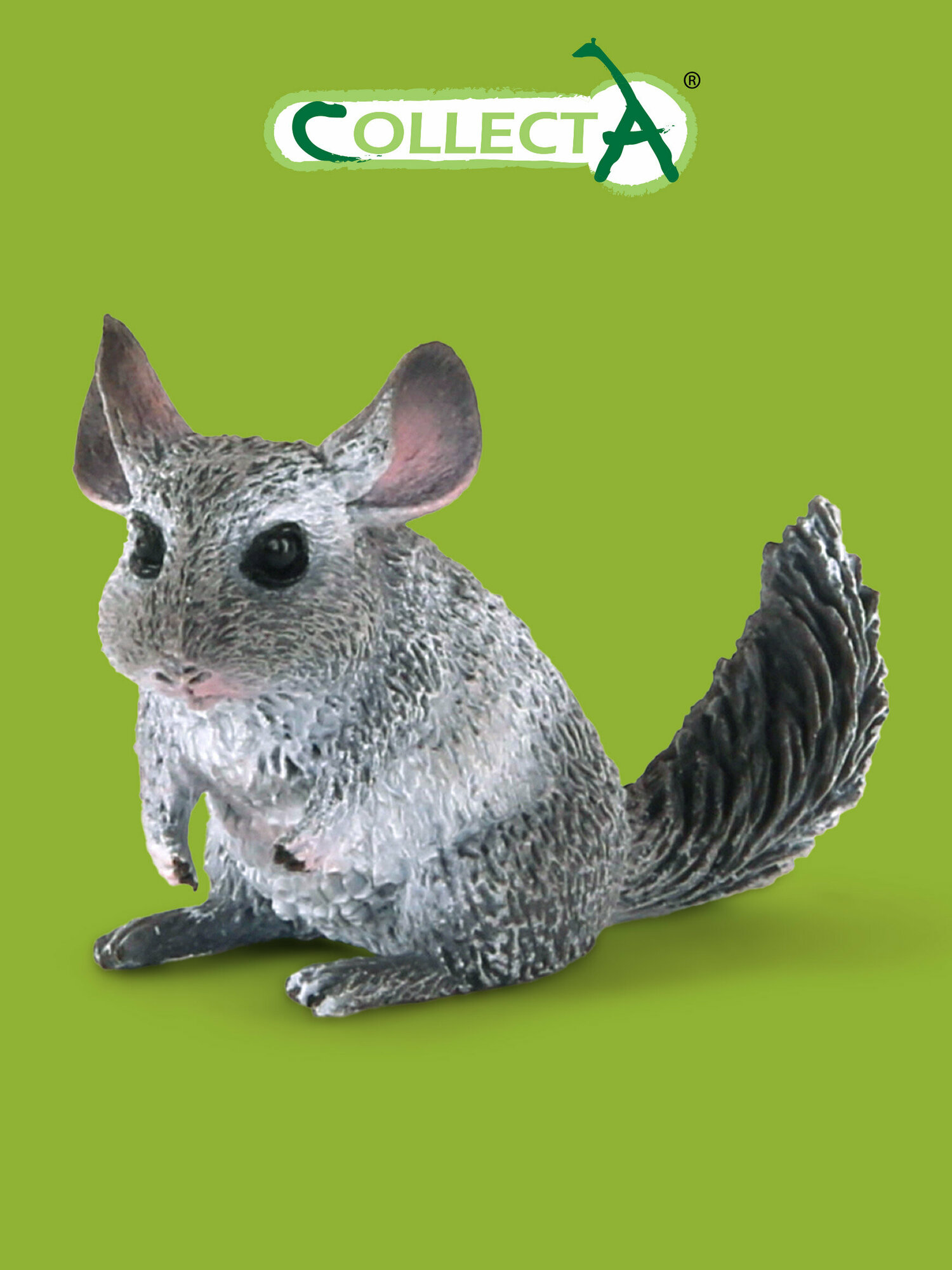 Шиншилла - относительно крупный пушистый грызун, обитающий в горах Южной Америки. Шиншиллы ведут ночной образ жизни. У этих грызунов сильные задние лапы, позволяющие им высоко прыгать, и очень ловкие передние, которыми они могут выполнять довольно сложные действия, например, очищать пищу от кожуры. Ценный мех зверьков долгое время делал их привлекательной целью для охотников, что привело к их занесению в Красную книгу. Шубка шиншиллы может быть разных цветов, но серая - самая распространенная. Игрушка отлита из прочного пластика и раскрашена вручную. При изготовлении фигурки значительное внимание уделено достоверности: сохранены реальные пропорции и анатомия прототипа, рельеф фактуры правдоподобно имитирует шкуру животного.