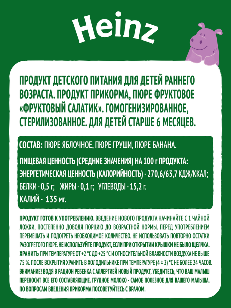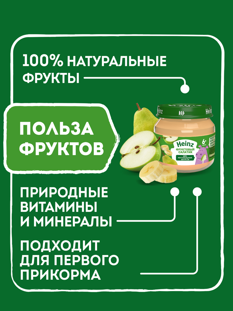 Пюре Heinz «Фруктовый микс» оптимальны для прикорма детей старше 6 месяцев.