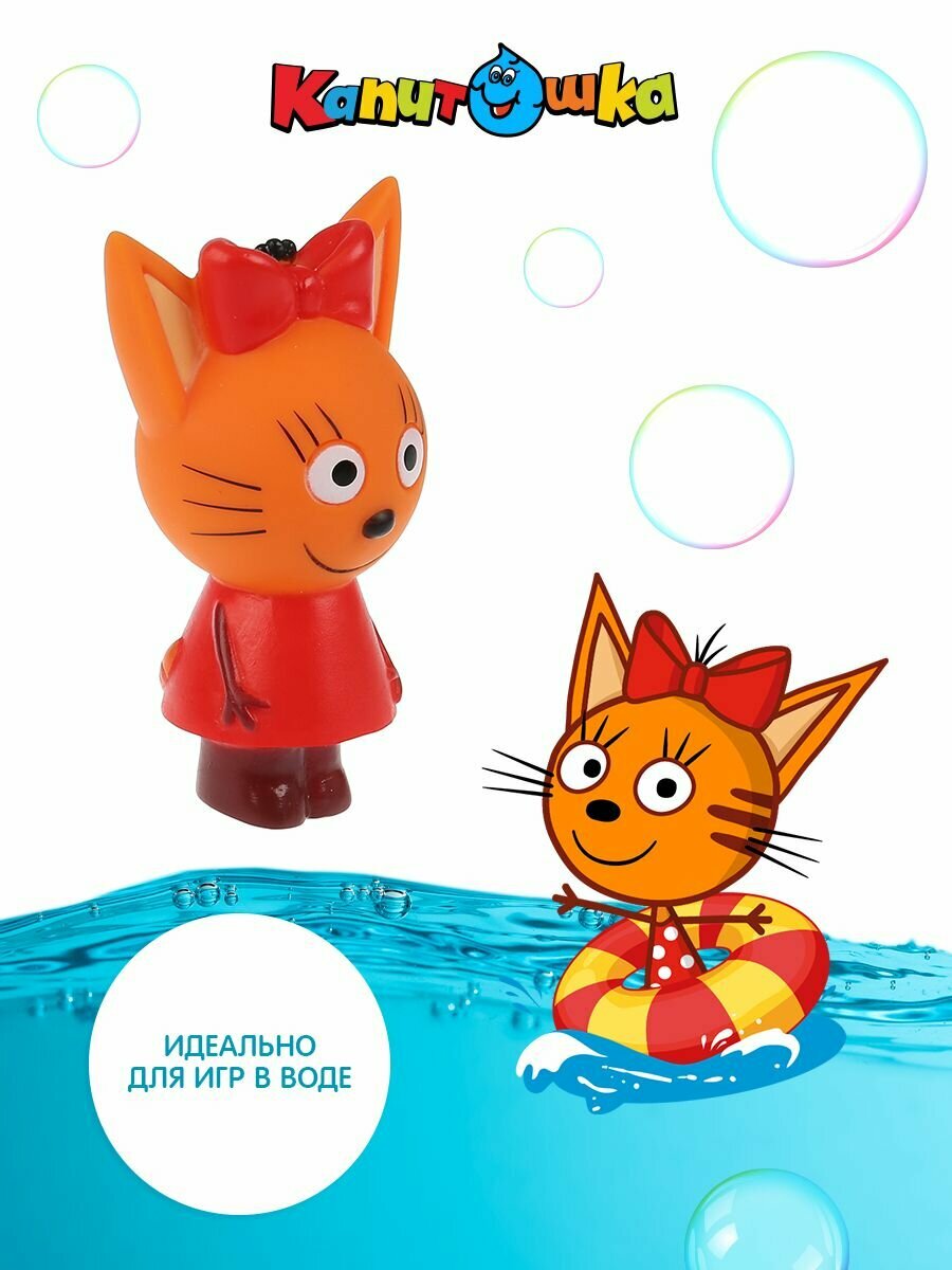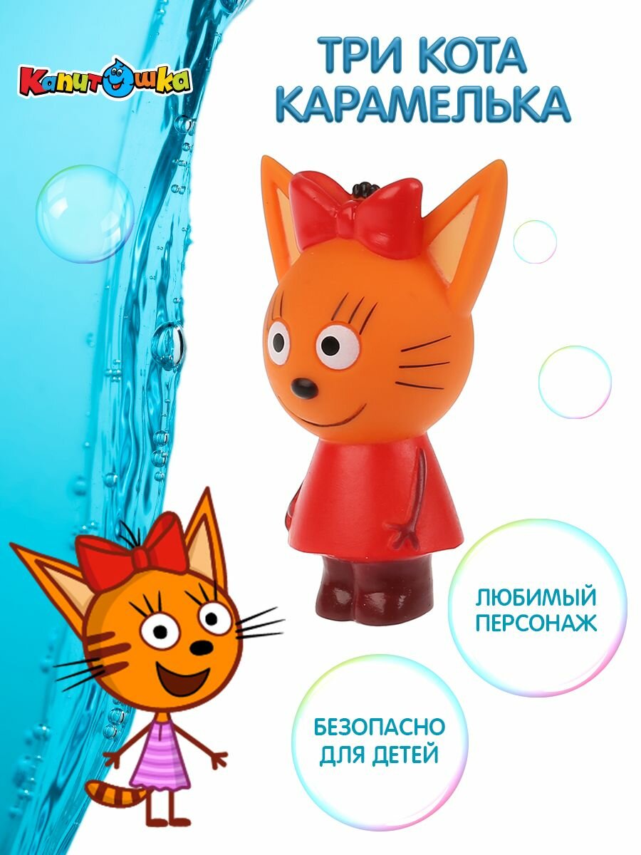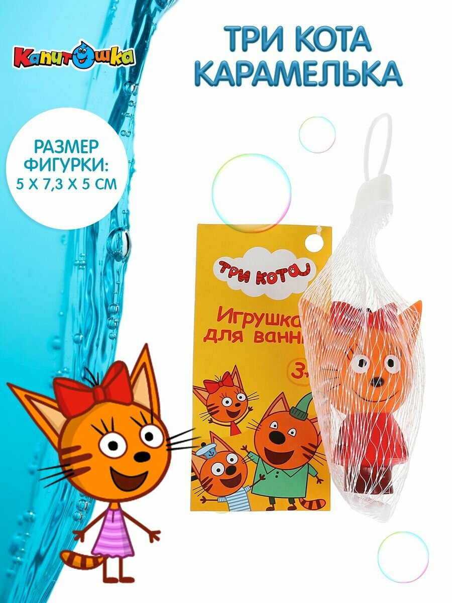 Игрушка для купания ТМ "Три Кота" сделает приём ванны увлекательнее и веселее. Она выполнена из мягкой пластизоли в ярких цветах, мордочка и все детали прорисованы. При намокании не теряет цвет, не меняет форму, сохраняет все свои качества. Не впитывает влагу, создана специально для малышей.