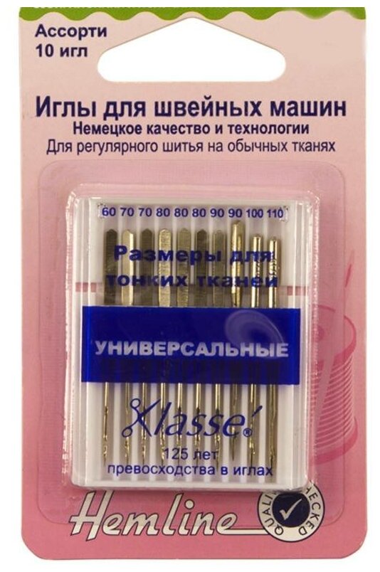 На сегодняшний день товар «100.993/G002 Иглы для швейных машин универсальные 60-110 Hemline» можно купить с кешбеком в 1 магазине: Яндекс.Маркет