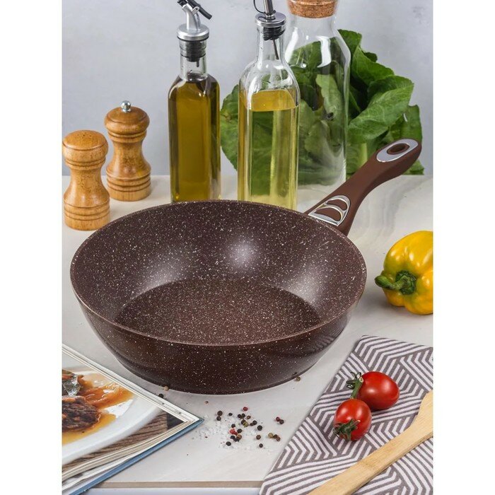 Сковорода BEKKER из кованого алюминия с мраморным покрытием поможет приготовить любимые блюда с минимальными усилиями. Высокие борта делают ее универсальной: она подходит для жарки, пассерования, тушения. Благодаря высоким антипригарным свойствам сковороды готовить на ней можно практически без масла, что особенно актуально для тех, кто контролирует калорийность пищи. Эргономичная бакелитовая ручка с покрытием Soft-Touch делает пользование изделием вдвойне комфортным: она не нагревается, обеспечивает надежный хват, имеет удобное отверстие для подвешивания.
