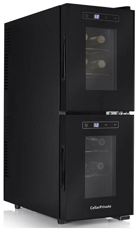 Винный холодильник CellarPrivate (Cеллар Приват) отличается компактными размерами и стильным исполнением. Шкаф по назначению подходит в быту и рассчитан на 12 стандартных бутылок. Следует помнить, что холодильник не должен встраиваться, а пол не должен быть теплым и подальше от батарей. Принудительная вентиляция обеспечивает внутри чистоту и порядок.