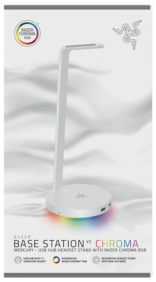 | Дополнительные возможности | Алюминиевая конструкция, Поддержка Razer Chroma /RGB, Подсветка, Противоскользящая основа, Увеличенная высота для больших гарнитур |
