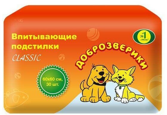Доброзверики впитывающие для животных 60х60см 60шт Пелигрин