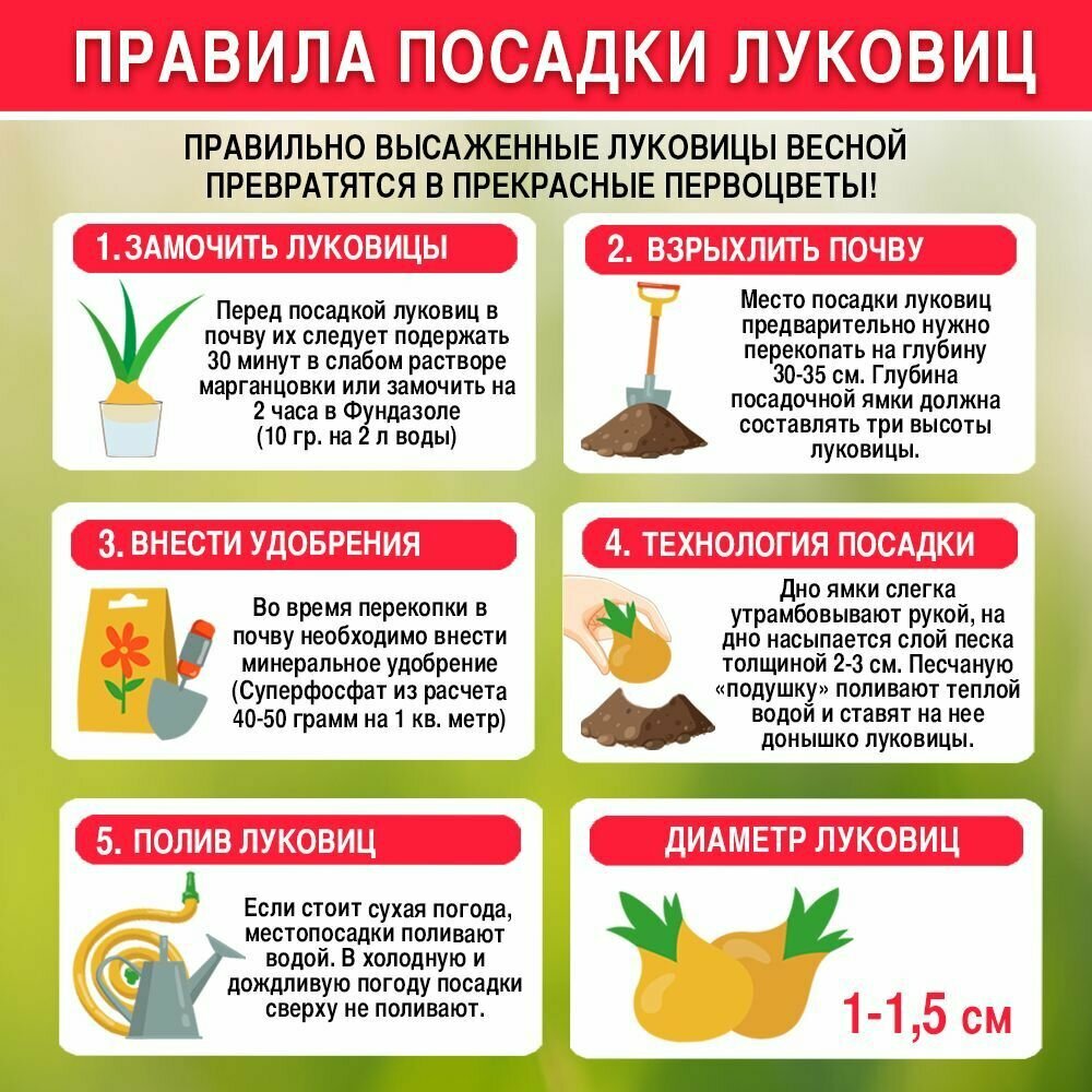 Посадка: Срок осенней посадки - август-сентябрь, весенней - конец апреля-май. Глубина посадки - 10-15 см. На одном месте могут расти от 3 до 5 лет.