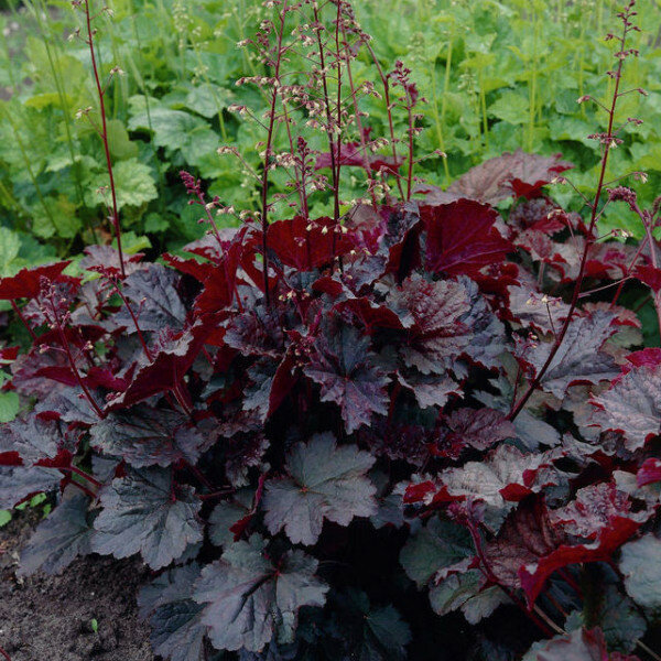 Гейхеры - корневищные многолетние травянистые растения до 50 см высотой. Листья собраны в прикорневую розетку, зубчатые. Растения развивают многочисленные цветоносы, отрастающие и цветущие разновременно. Цветки мелкие, розовые, красные, белые, собраны в метельчатое соцветие до 20 см длиной. Растения зимуют с листом. Сегодня декоративно-лиственные гейхеры, благодаря яркой и насыщенной цветовой гамме, разнообразию сортов, стали известными, модными и необыкновенно популярными растениями, уступая первенство, пожалуй, только хосте. Современные сорта и гибриды гейхеры декоративны, эффектны, неприхотливы, зимостойки, несложны в уходе. И все же эти растения еще мало распространены в российских садах.