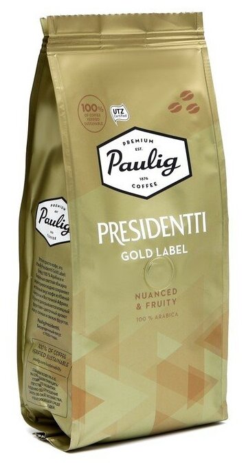 Paulig Presidentti Gold Label – уникальный кофе, приготовленный из смеси редких кофейных зерен 100% арабики. Благодаря легкой обжарке достигается богатый, неповторимый аромат. Вкус Paulig Presidentti Gold Label мягкий, с легкими цветочно-фруктовыми нотками.