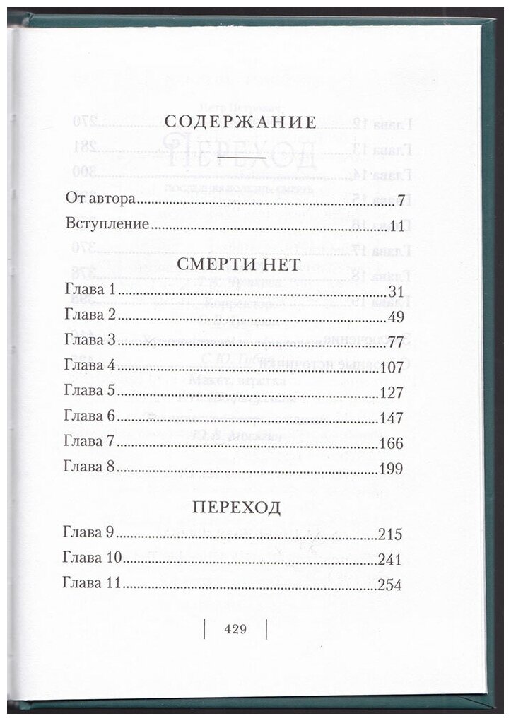 "Смерть совсем не такая, какой мы ее чаще всего себе представляем. Всем нам при умирании придется увидеть и пережить много такого, чего мы не ждем и о чем не думаем. Труды современных нам врачей-реаниматоров позволили взглянуть за пределы земной жизни и узнать немного больше, чем мы знали до сих пор", - пишет автор книги "Переход" Петр Петрович Калиновский (1906-2003), по специальности врач-хирург. После второй мировой войны П. П. Калиновский жил и работал в Австралии. Книга доктора Калиновского написана человеком глубокой веры и подлинного опыта христианской духовной жизни и посвящена самому главному для человека вопросу - вопросу о смерти. Автор книги "Переход", изучив свыше пятисот историй клинических смертей, пришел к выводу, что существование по ту сторону жизни - уже не возможность, а доказанная очевидность.