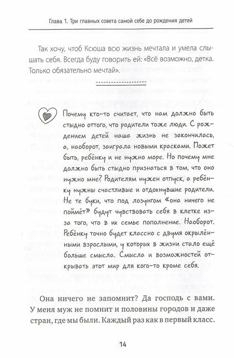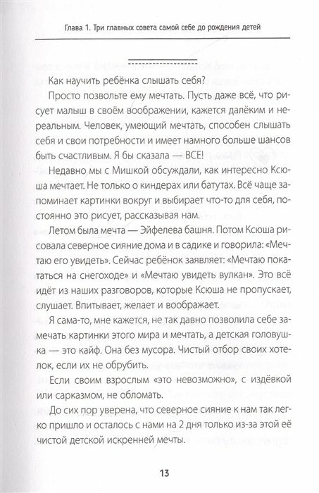 Легко и непринужденно поданы важные проблемы в общении детей и взрослых. Прекрасно раскрыта примерами проблема «что скажут люди», личные границы мамы и ребёнка, воспитание пап, как маме почувствовать себя «хорошей» мамой, как же быть, если борщ у свекрови вкуснее и она лучше знает, как вам одевать вашего ребёнка. Книга прекрасная как и весь Инстаграм Любы. Всем кто считается мамой или вот-вот собирается ей стать.