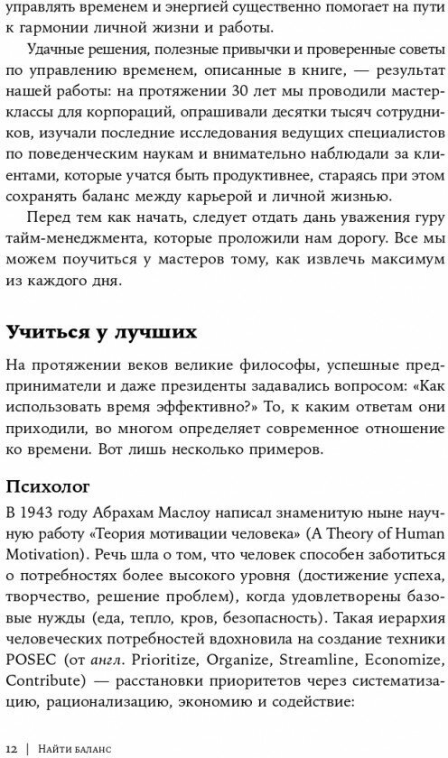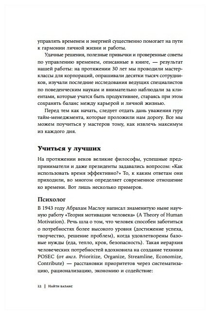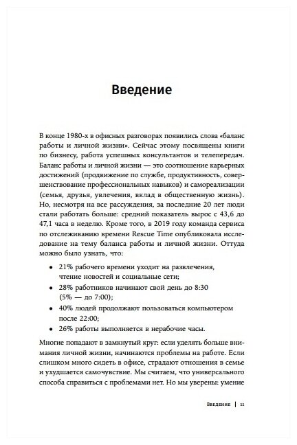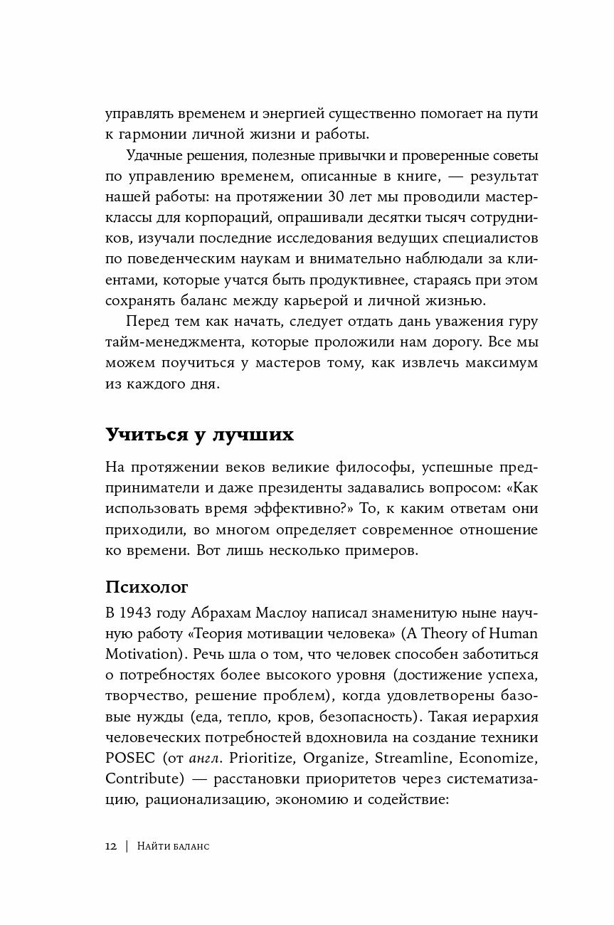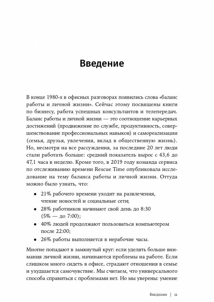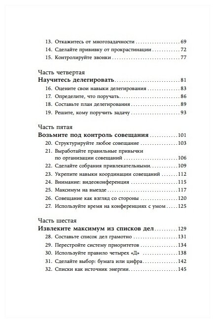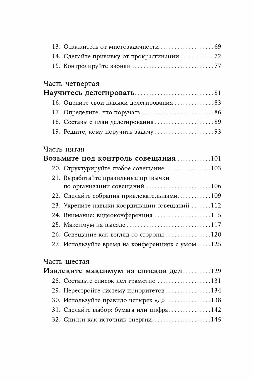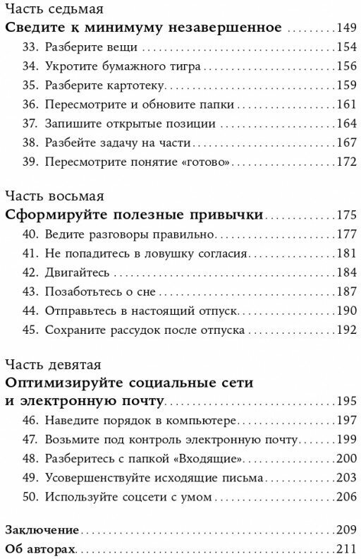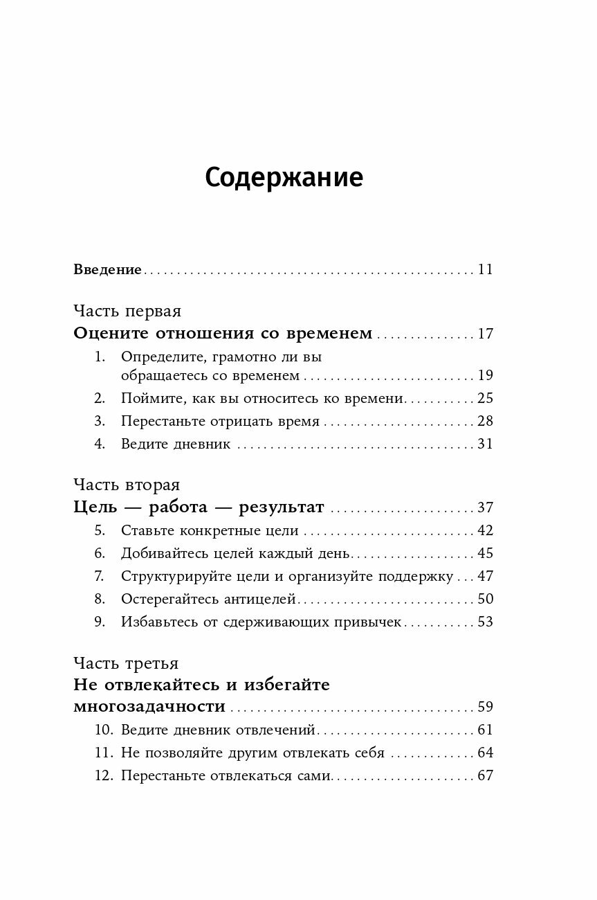 Читается книга на одном дыхании, всё советы структурированы по главам, в которых выделена суть. Большинство глав приправлено наглядными примерами и упражнениями, которые помогут по-новому взглянуть на время, которое отведено нам в сутках.