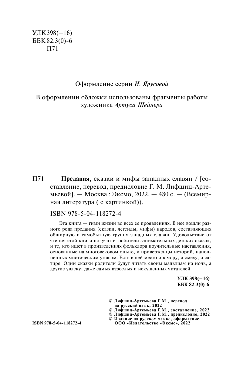 Предания сказки и мифы западных славян (Лифшиц-Артемьева Г. (сост.)); Эксмо, Редакция 1, 2024