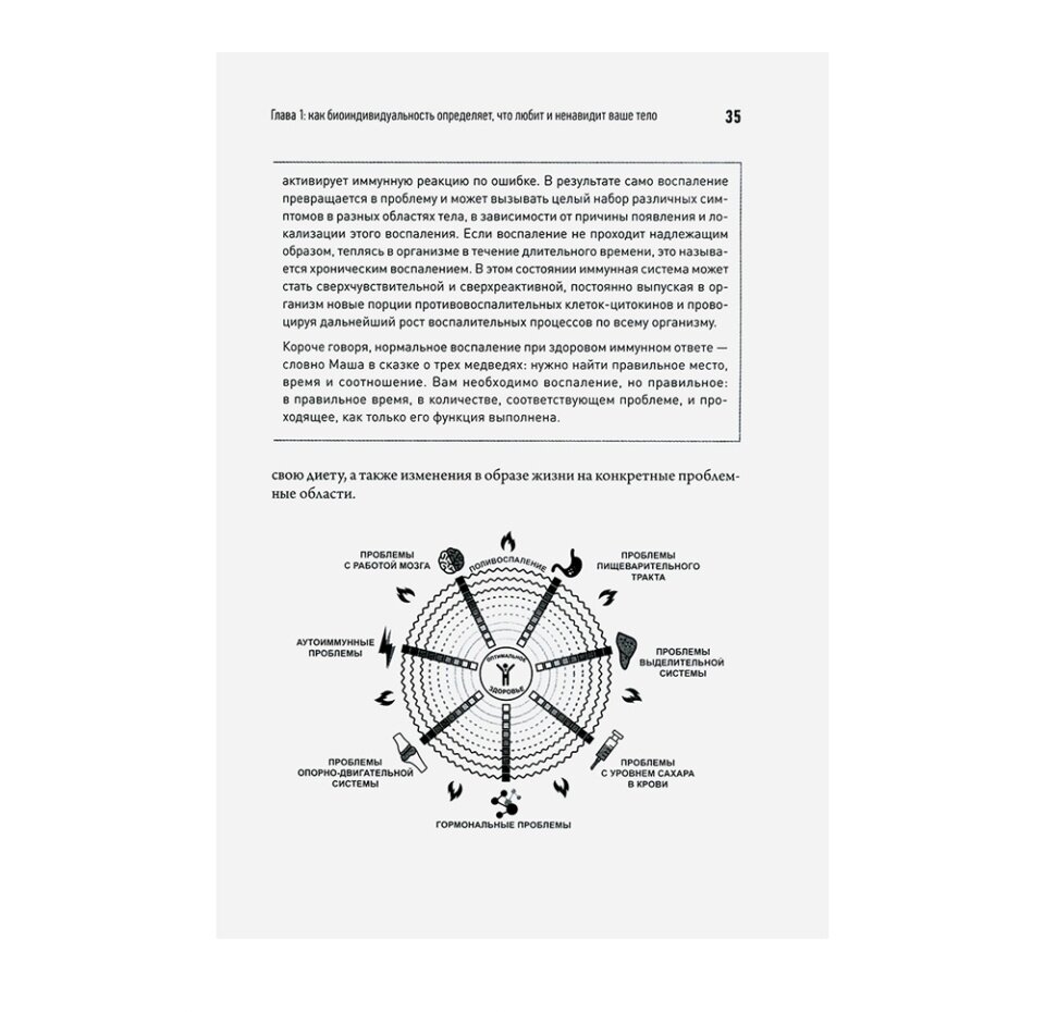 Эта книга хочет донести до каждого одну очень важную мысль - необходимость следить за своим питанием, что в итоге приведет вас к хорошему здоровью и отказу от многих фармацевтических средств. Для этого автор книги хочет сначала дать вам возможность разобраться на каком этапе воспаления - плохого самочувствия - находитесь сейчас вы, и как это исправить путем специальной индивидуальной диеты. В принципе ознакомление с такой темой очень важно, это не однократная помощь, знания о том, какие продукты подходят именно вам будут помогать вам всю жизнь