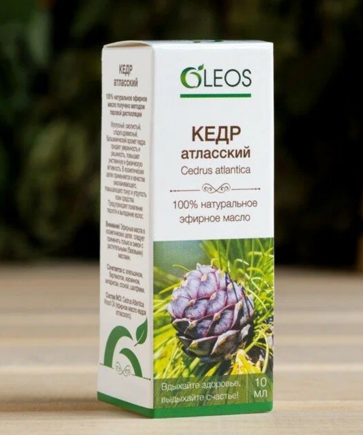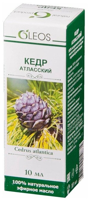 Состав: Кедра атласского эфирное масло 100%. Получено методом паровой дистилляции из из хвои и молодых побегов.