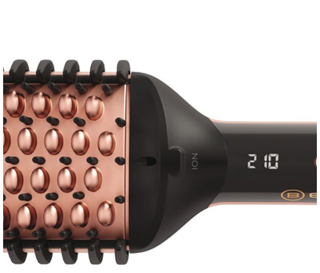 Идеальна для любого типа волос. Время нагрева до 5 сек Температура нагрева 160-230 градусов. Ion Technology: дополнительная ионизация помогает уменьшить запутывание волос Технология Ceramic coating керамическое покрытие помогает защитить от жары и обеспечивает идеальное скольжение, оставляя ваши волосы сияющими 6-уровневый цифровой температурный контроль от 160 C до 210 C. Нагревание с 3х строн. Естественный прямой эффект: широкая нагретая поверхность в сочетании с керамическими и пластиковыми щетинками а также боковыми расческами позволяет ей хорошо скользить по волосам и контролировать каждую секцию, чтобы волосы выглядели естественно прямыми, каждый день, даже на кудрявых или вьющихся волосах. Укладывайте локоны так, как Вы хотите- внутрь или наружу. дополнительные особенности: ЖК дисплей с указанием температуры Система поддержания заданной температуры Автоматическое отключение через 60 минут Поворотный шнур длиной 1,8 метра с кольцом для подвешивания.