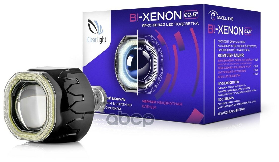 Современная и яркая подсветка “ангельский глаз”, корпус линзы изготовлен в черном цвете, что придаст индивидуальный дизайн вашему автомобилю Опция биксеноновый свет доступна не всем современные автомобилям. Свет от обычной фары не всегда удовлетворяет требованиям водителя. В городских условиях, это может быть не так заметно, а вот при движении ночью в условиях ограниченной видимости, без включения дальнего света, слепящего встречный поток, ничего не видно. Установка би-ксеноновых линз в фары позволит сделать такие поездки заметно более комфортными. А в городских условиях помимо всего этого, ретрофит оптики придаст оригинальный внешний вид вашему автомобилю. Биксеноновые линзы ClearLight обеспечивают оптимальное освещение дороги, не ослепляют водителей встречного движения и гарантируют высокий уровень безопасности. Отсекающая шторка с электромагнитным приводом обеспечивает мгновенное и точное переключение между ближним и дальним светом. Отражатель линзы выполнен по немецкой технологии и в соответствии стандартам мирового уровня. Абсолютно прозрачное оптическое стекло линзы с качественной полировкой. Подходят для установки на большинство моделей легкового, грузового и мототранспорта. Используется универсальная лампа H1.