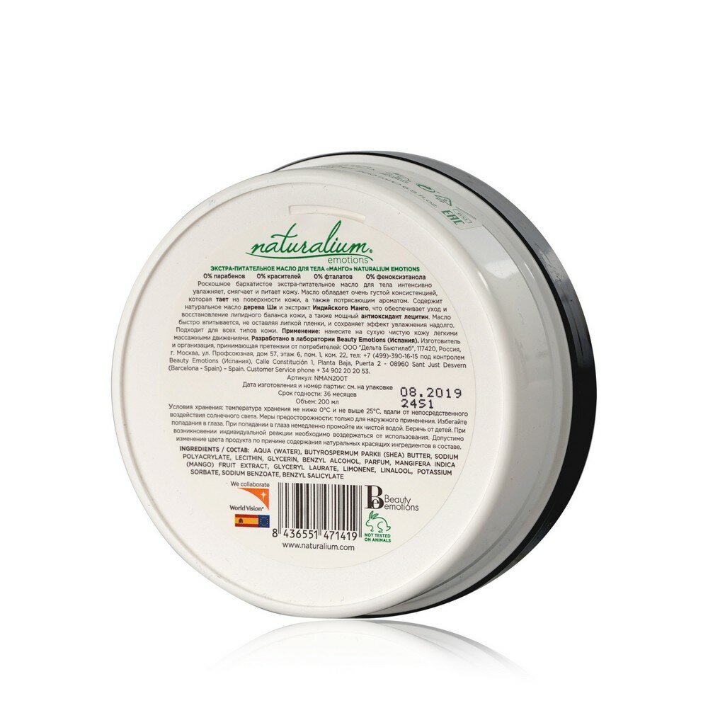 | Полное наименование | Масло для тела Naturalium Питательное Манго 200мл |