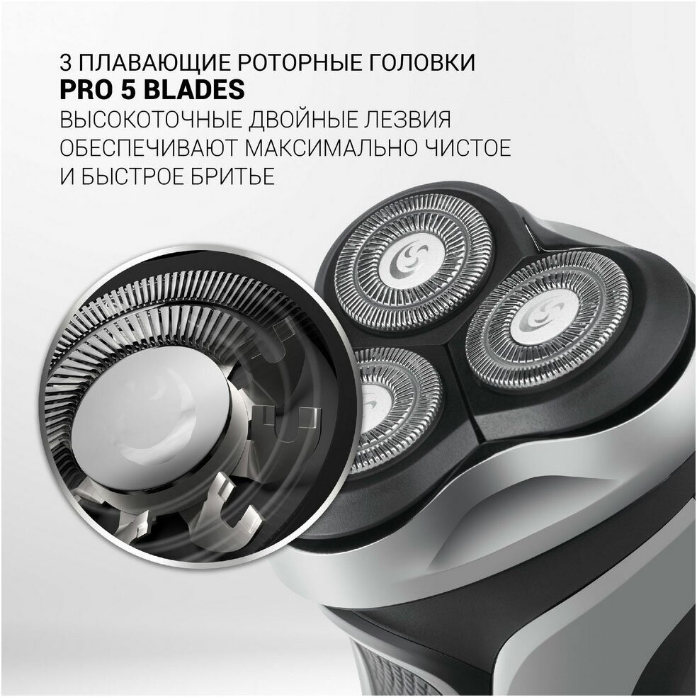 | Прочие особенности и свойства | 3 плавающие роторные головки PRO 5 BLADES.,Встроенный триммер. |