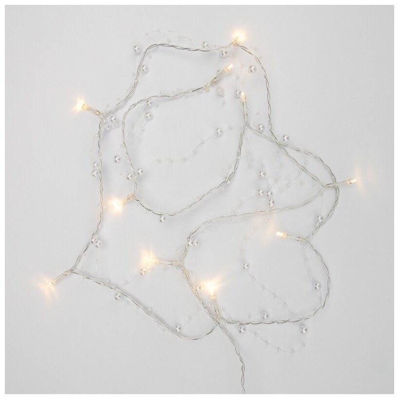 Гирлянда на батарейках с насадками-жемчужинами относится к оригинальному варианту оформления интерьера. Используется для декорирования елок средней высоты, разнообразных композиций с целью создания яркого акцента. Светодиоды насыщенного сияния не нагреваются и минимально расходуют электроэнергию.