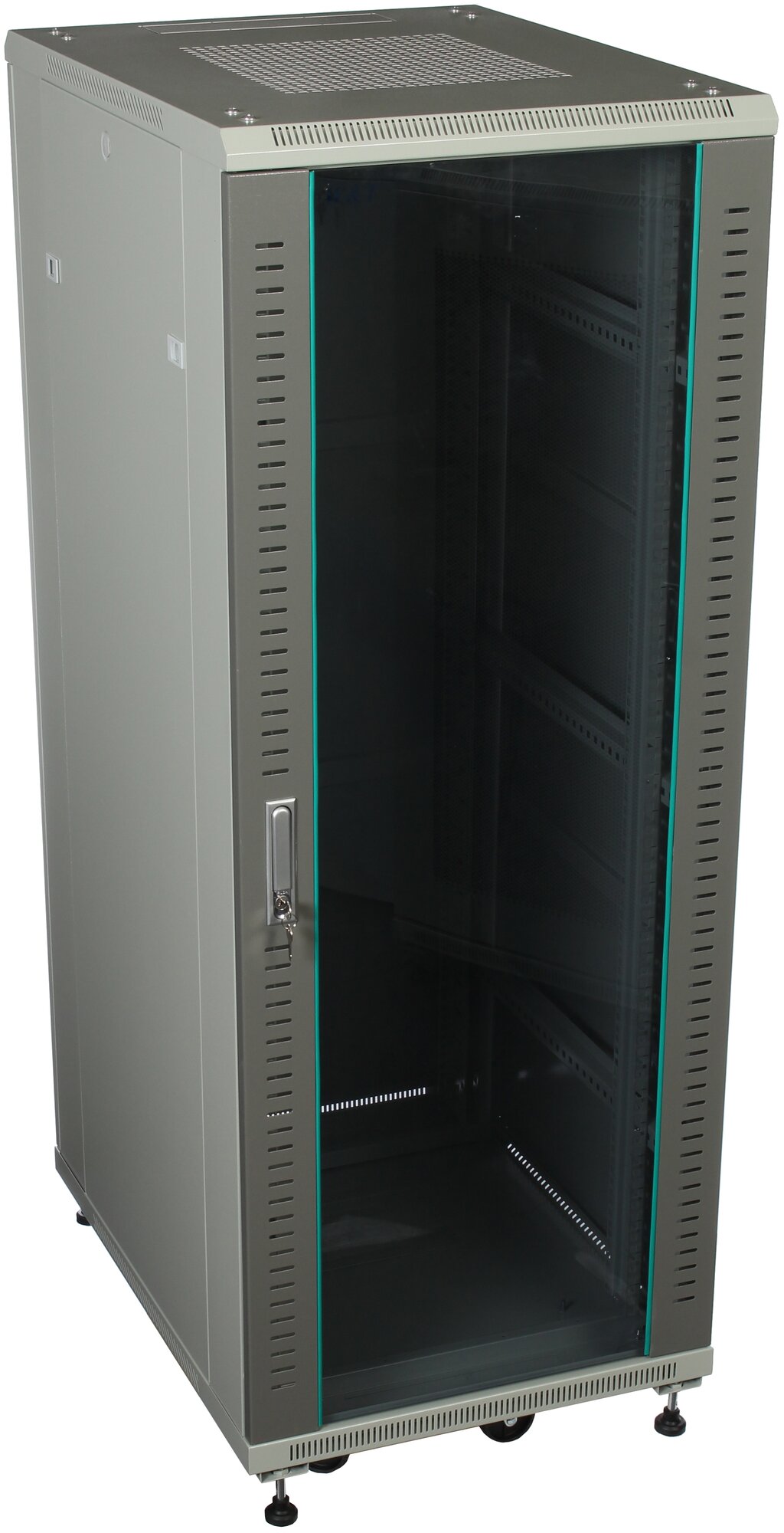 Шкаф напольный 19", 33U 600x800 мм, передняя дверь стекло, задняя глухая металл, цвет серый. Без вент.