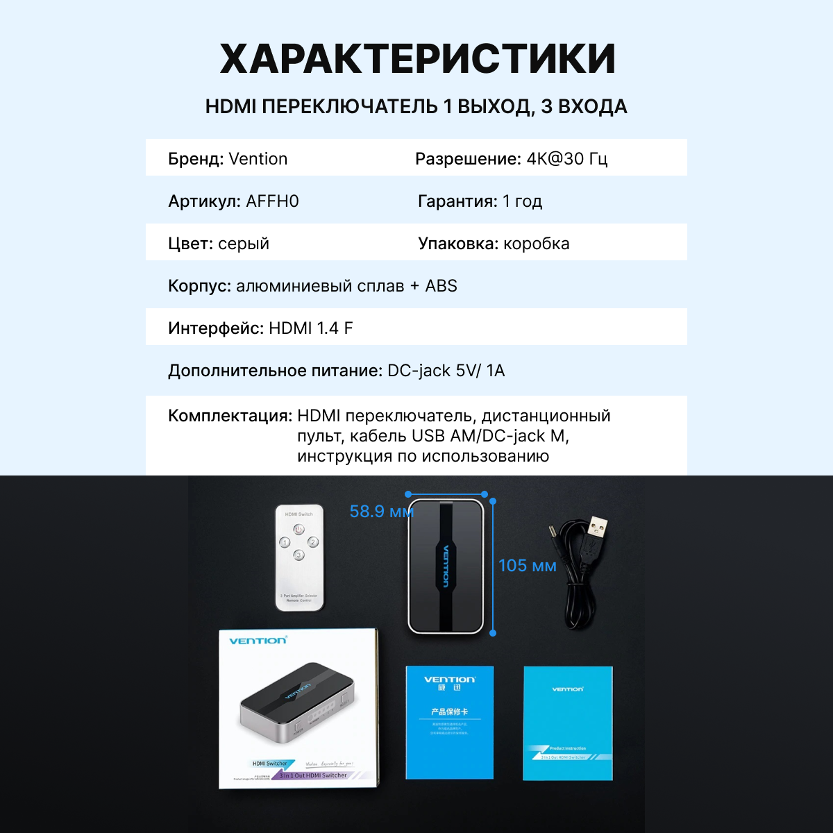HDMI переключатель предназначен для коммутации большого количества устройств с разъемом HDMI. С помощью данного переключателя можно подключить DVD-проигрыватель, игровую приставку, фото камеру, либо компьютер и т. д.,к телевизору, с последующим выводом изображения на экран.