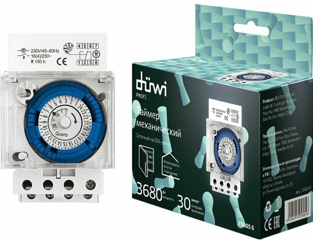 Механический суточный таймер на DIN-рейку duwi 25805 6
