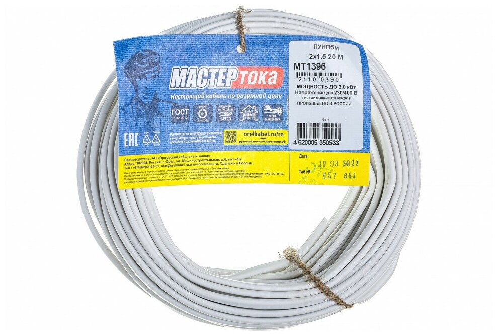 Не забудьте, что Провод МАСТЕР ТОКА МТ1402 ПУНПбм 2х1.5мм2 произведен в России, что гарантирует его высокое качество и соответствие всем нормам безопасности. Вы можете быть уверены в надежности этого товара!