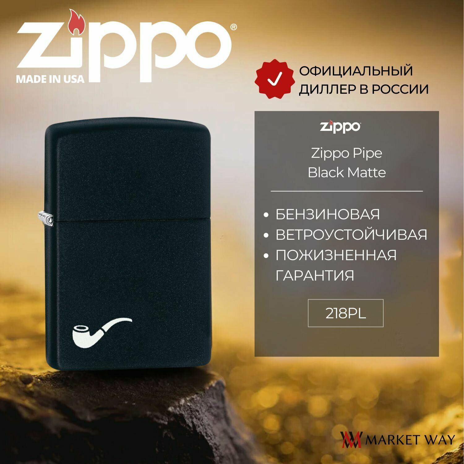 Зажигалка Zippo Pipe латунь/сталь черный матовый 218PL (размер: 36x12x56 мм)