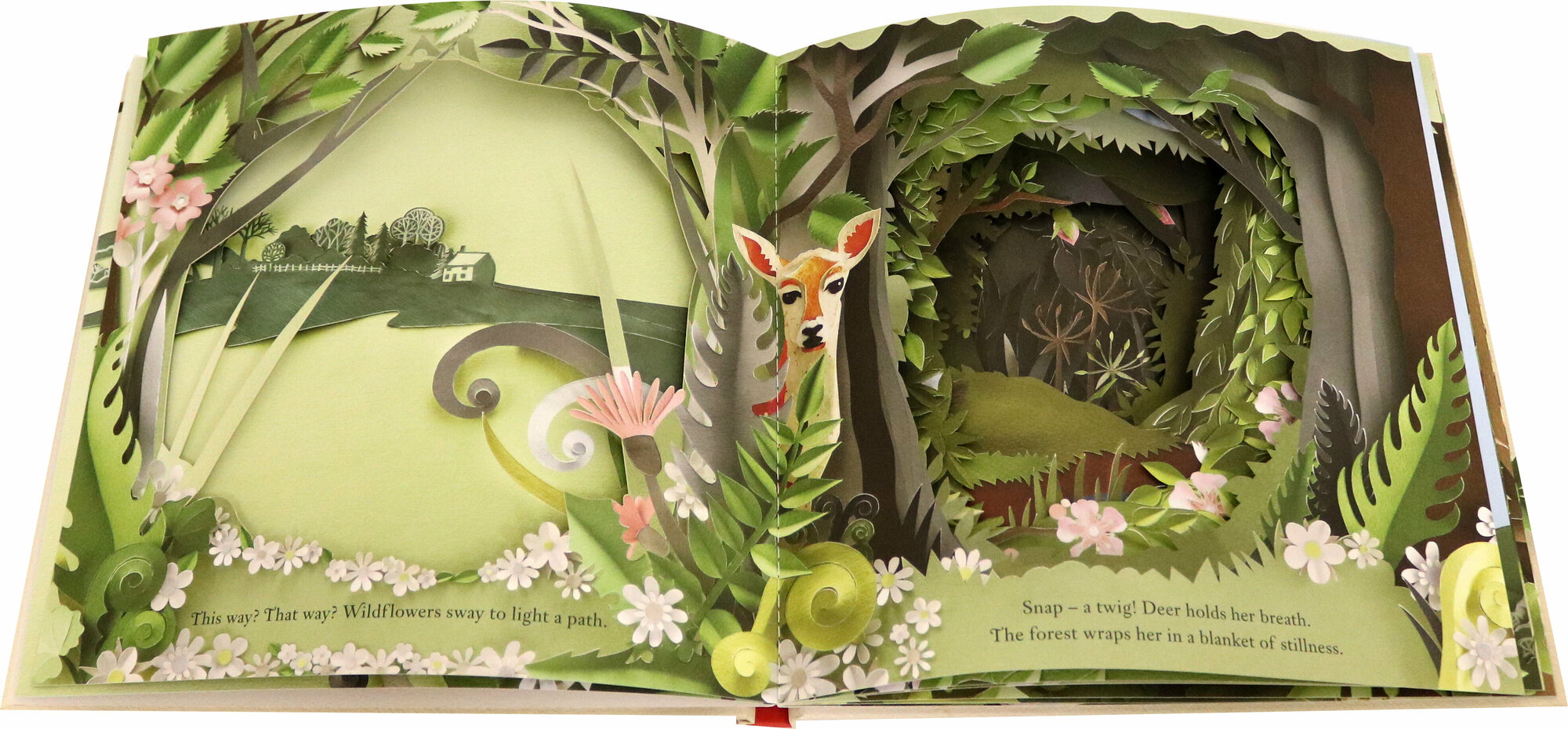Wander through the woods, where wildlife and plants are waiting to be discovered in this immersive and magical paper-cut world. Helen Musselwhite’s intricate and beautifully crafted paper scenes are accompanied by Louise Greig’s lyrical voice in this magical walk through the woods. An enchanting story which is also a beautiful work of art and a fantastic gift to treasure and share.