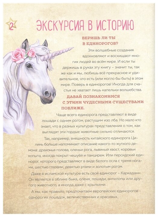 Книга очень милая и очаровательная, понравится юным любительницам единорогов. Оформления красочное, твердая обложка, хорошие иллюстрации. Внутри немного истории и мастер классы о том как дома сделать своего единорога. Из бумаги, из пряжи, из бисера, как нарисовать самой. Все понятно и доступно. Материалы конечно в некоторых случаях придется подбирать, но для совместного досуга с ребенком это даже интереснее. Да и цена приятная.
