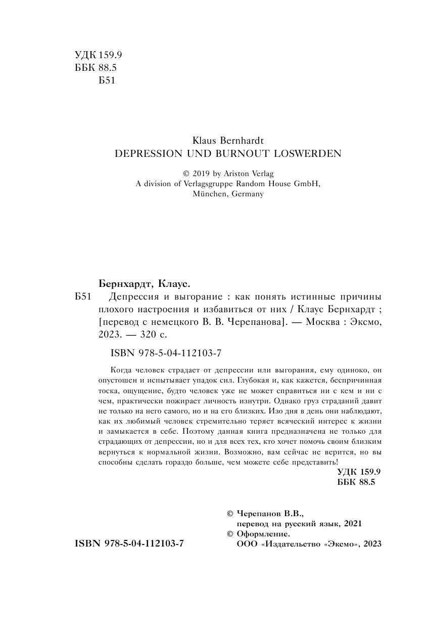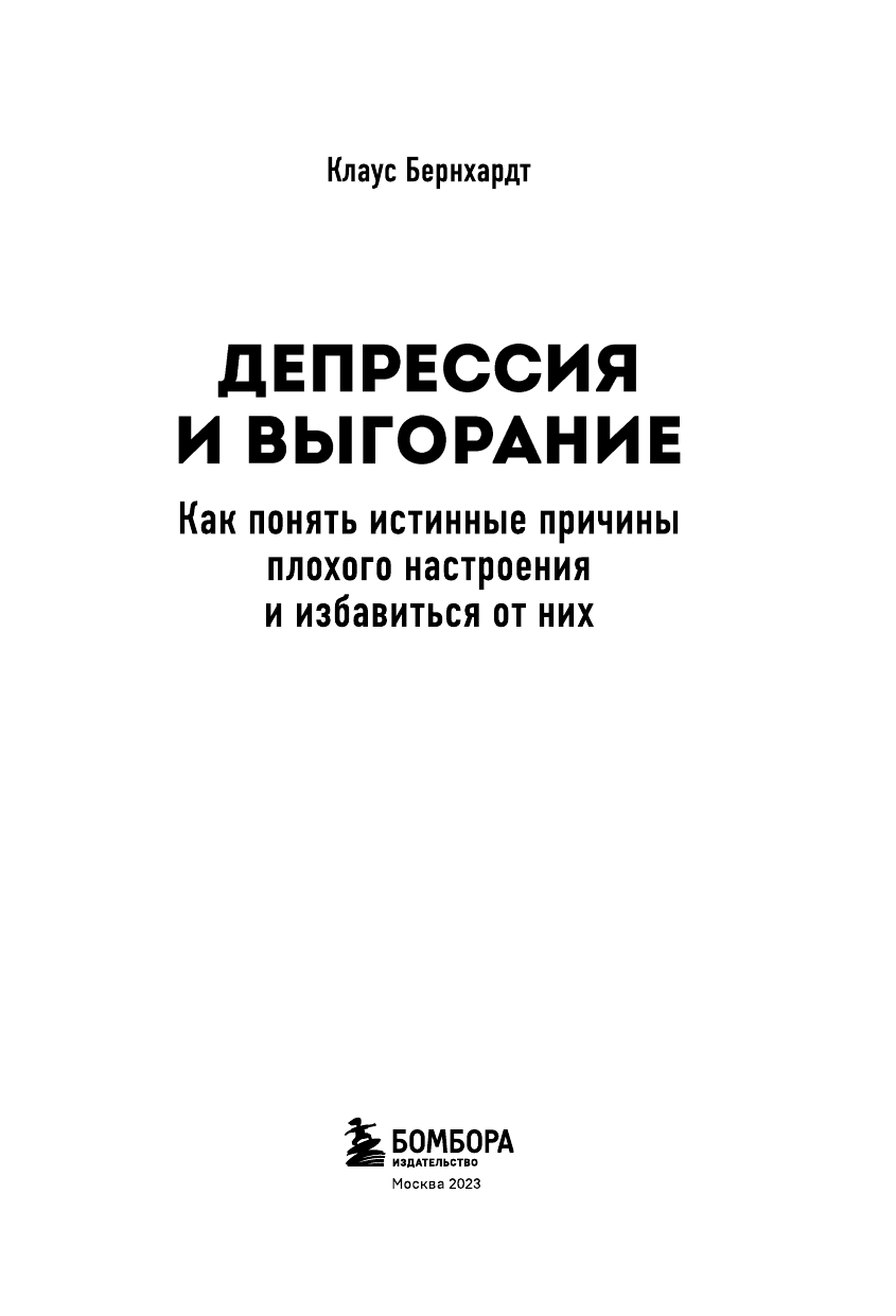 Депрессия и выгорание. Как понять истинные причины плохого настроения и избавиться от них (Клаус Бернхардт); Эксмо, 2019