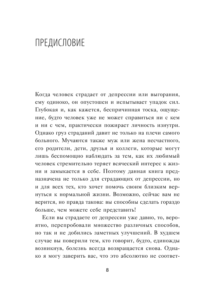 Неправильное питание, неправильное лечение, неправильное мышление — вот лишь некоторые из часто удивляющих и недооцениваемых причин депрессии, выгорания и тревожности. Клаус Бернхардт — немецкий психотерапевт с большим опытом, разработал авторскую методику для преодоления эмоциональных проблем. Простые и эффективные упражнения, не потребуют много сил на их выполнения, но всего за пару недель помогут вернуть радость жизни.
