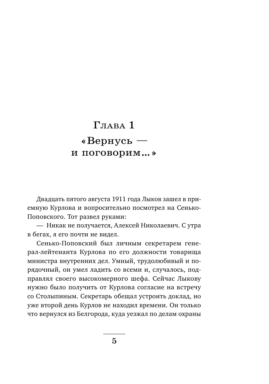 Стараюсь читать все книги Свечина.Сыщик Лыков ведет свои расследования в декорациях ушедшего мира начала 20 века.Быт и нравы того времени не менее интересны самих расследований.В данной книге герой оказался уж совсем в опасной ситуации,где все против него: и свои, и чужие.После прочтения первых стриниц с нетерпением жду выхода книги.