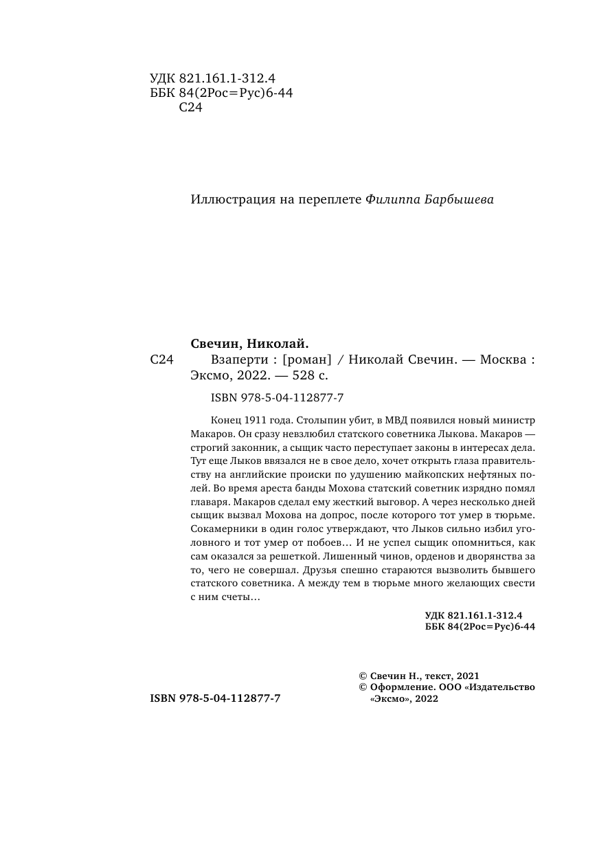Книга: Взаперти (Николай Свечин); Эксмо, Редакция 1, 2022
