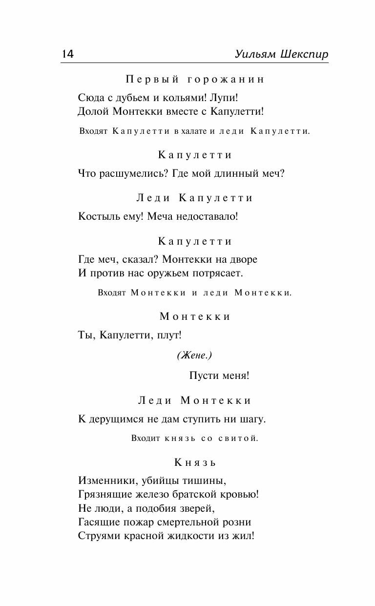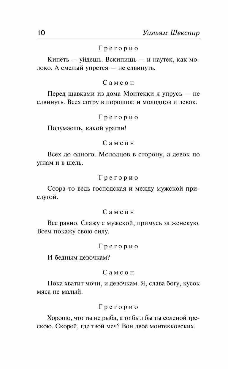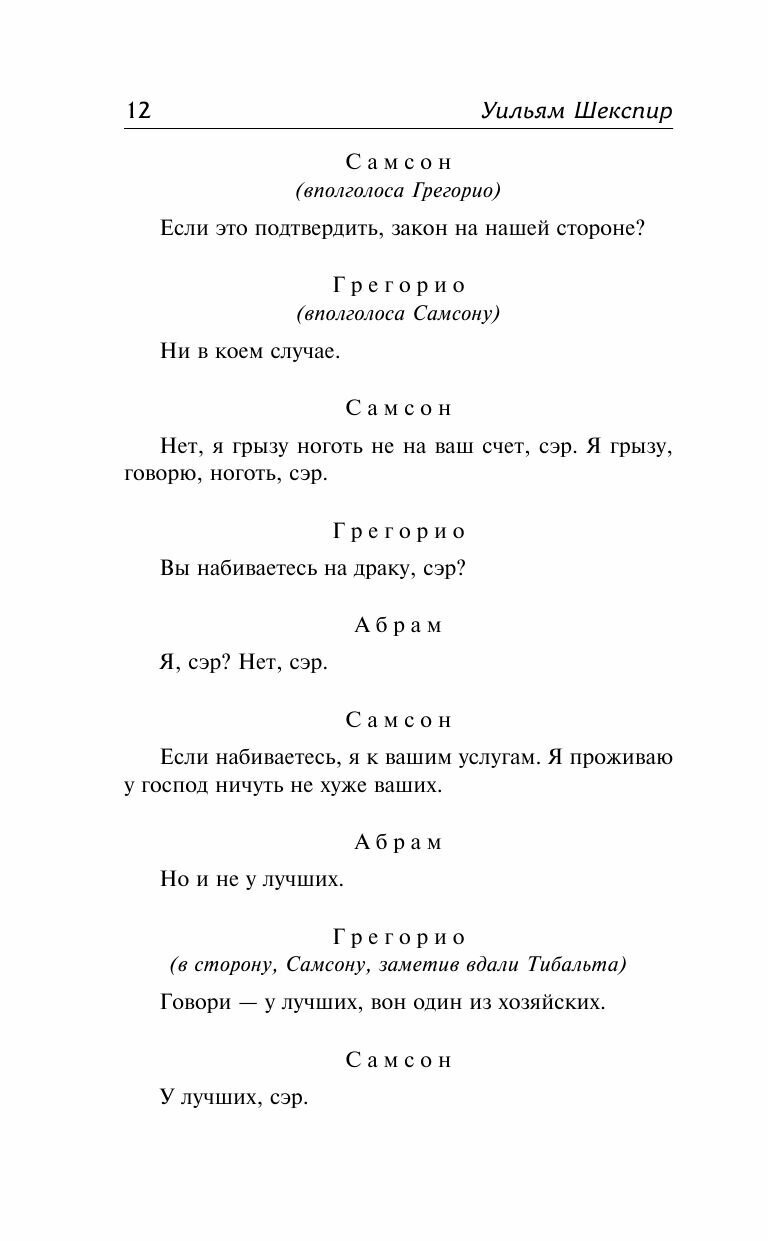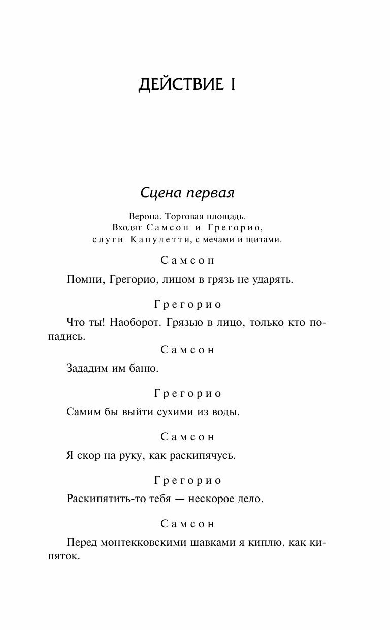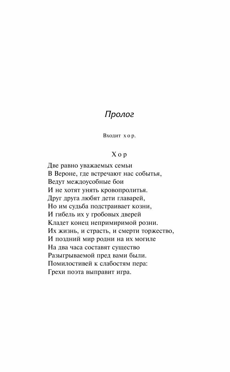 Запретная любовь , она же - первая. Познакомилась с пьесой ещё в школе, но смогла почувствовать и понять только в зрелом возрасте , когда сама стала матерью, и стали понятны чувства и эмоции почти что каждого героя а не только Ромэо и Джульетты. Здесь нет великого смысла, афоризмов, цитат , но прикоснуться к классике средневековья должен каждый.Перевод отличный, погружение в действие полное, хотя пьесы не всегда читаются легко. Шекспир, ты - гений.
