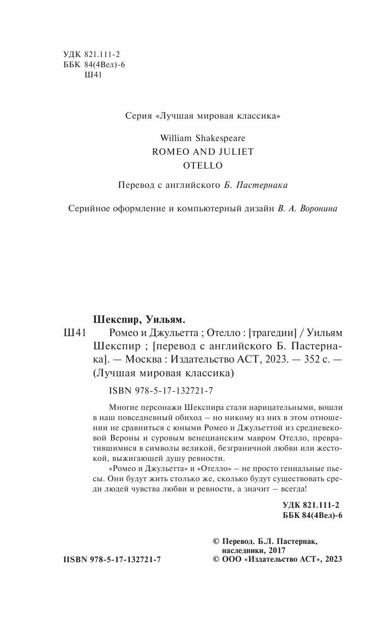 Ромео и Джульетта. Отелло. (Уильям Шекспир); ИЗДАТЕЛЬСТВО "АСТ", 2023
