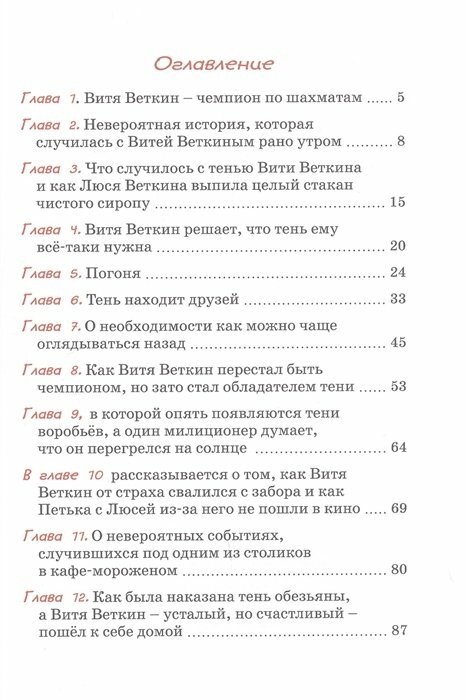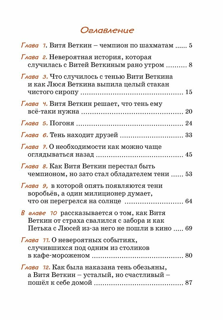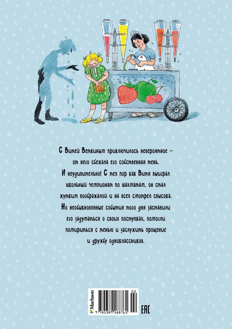 С Витей Веткиным приключилось невероятное - от него сбежала его собственная тень. И неудивительно! С тех пор как Витя выиграл школьный чемпионат по шахматам, он стал жутким воображалой и на всех смотрел свысока. Но необыкновенные события того дня заставили его задуматься о своих поступках и помогли помириться с тенью и заслужить прощение и дружбу одноклассников.