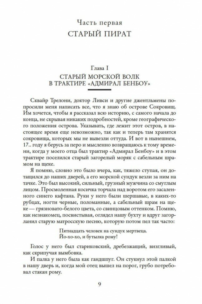 «Однажды я начертил карту острова; она была старательно раскрашена; изгибы ее необычайно увлекли мое воображение; здесь были бухточки, которые меня пленяли, как сонеты. Когда я уронил задумчивый взгляд на карту своего острова Сокровищ, средь придуманных лесов зашевелились герои моей будущей книги» — так написал Стивенсон, вспоминая с чего начался роман, ставший главным приключенческим чтением для многих поколений читателей.