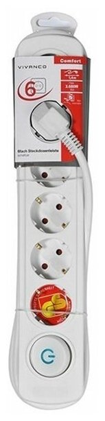 Удлинитель Vivanco EKLS 6W. Этот удлинитель имеет 6 розеток и отлично подойдёт для дома. Сделан из прочного пластика.